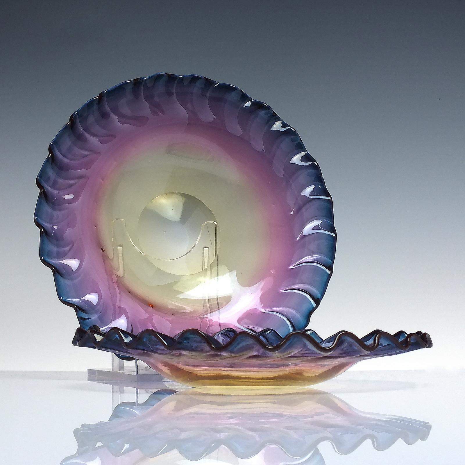 Pair of Neodymium (Alexandrite) Victorian Glass Plates by Thomas Webb & Sons c.1900