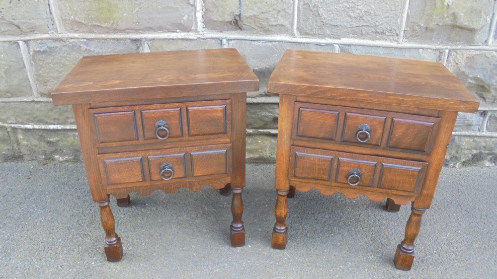 Pair of Oak 2 Drawers Bedside Tables c.1920
