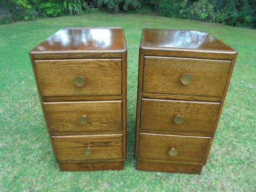 Pair of Oak 3 Drawers Bedside Chest / Bedside Table c.1920