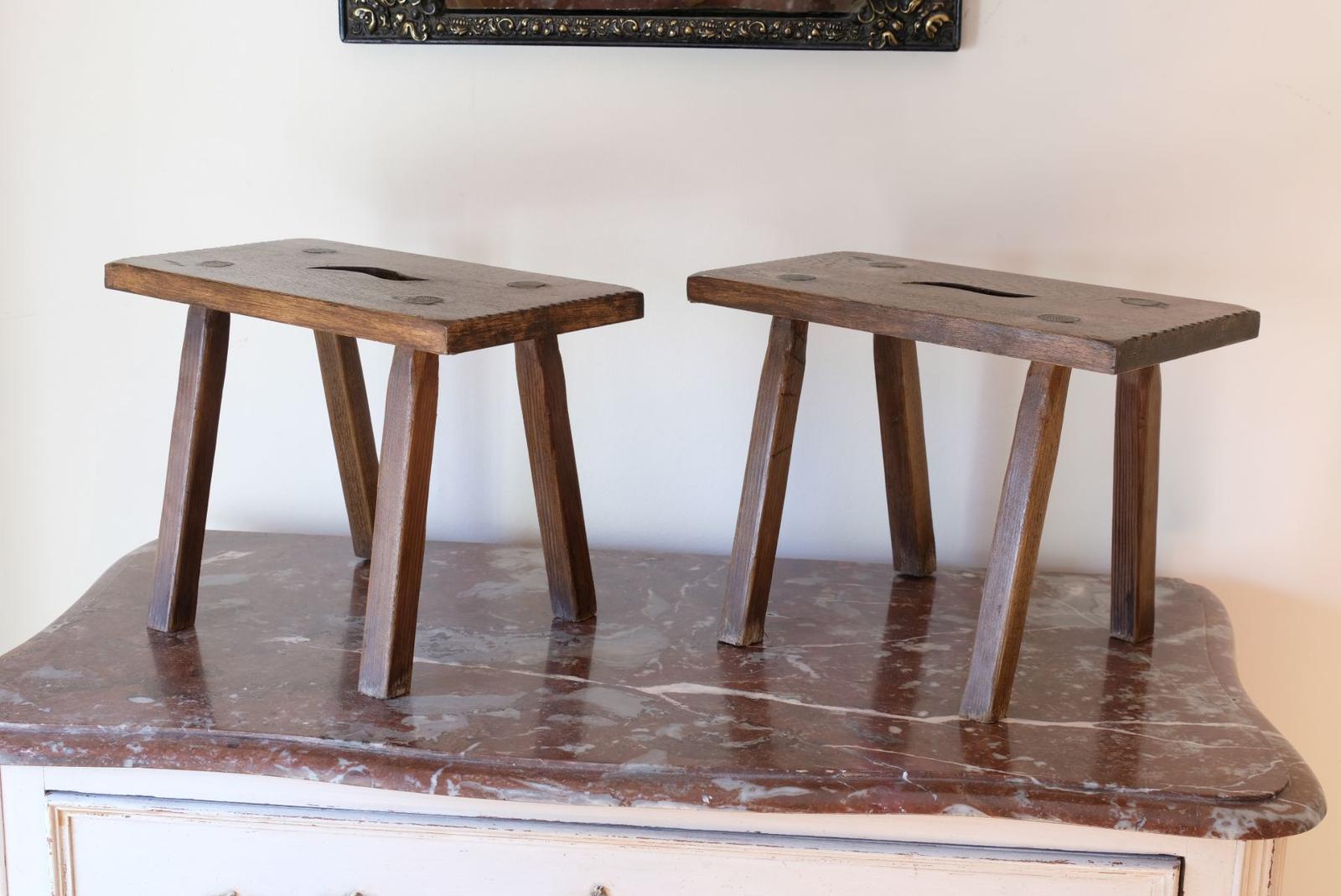 Pair of Oak Fireside Stools with Fretwork Cutout
