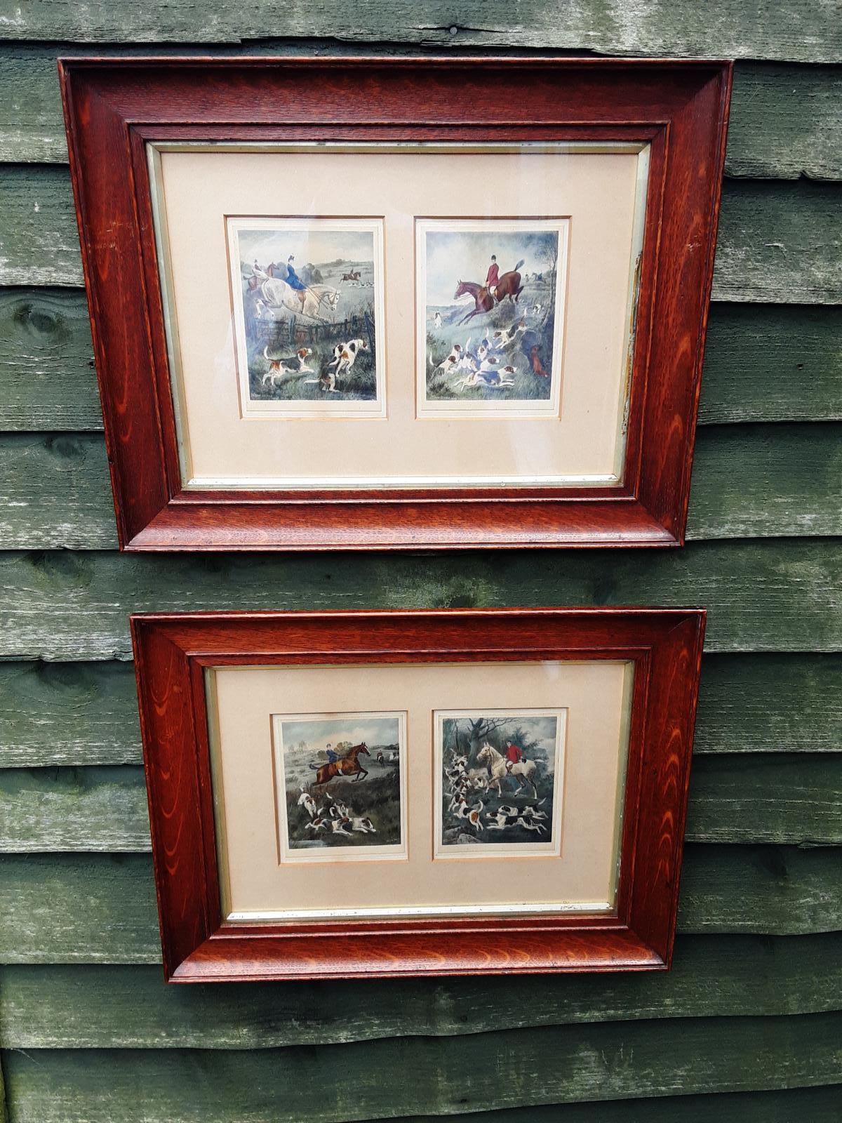 Pair of Oak Framed Hunting Prints c.1910