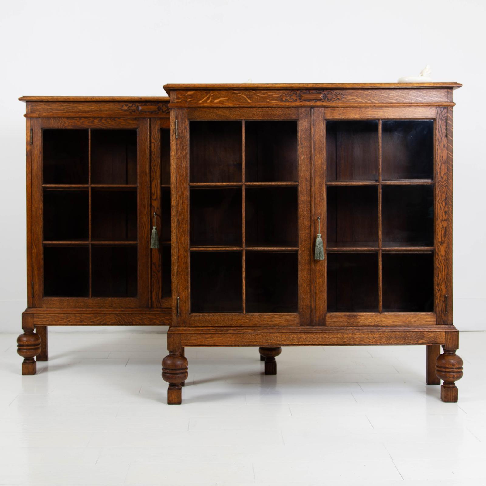 Pair of Oak Glazed Bookcases Cabinets Maple & Co c.1920