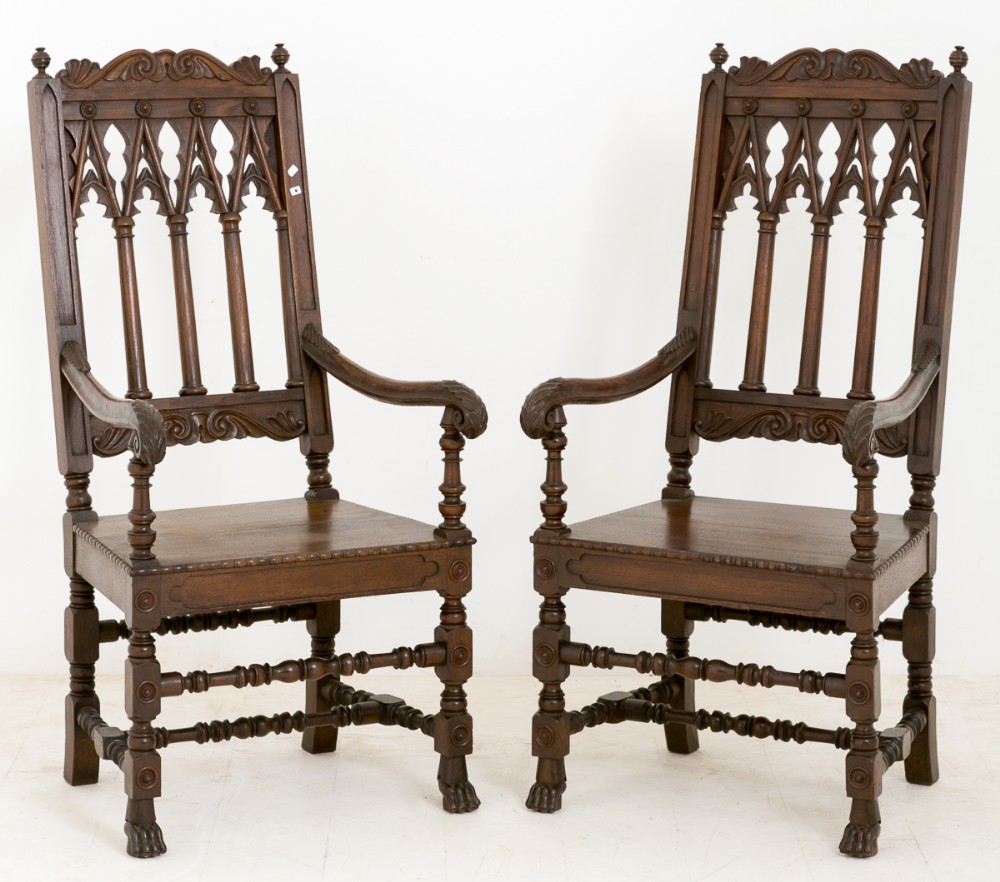 Pair of Oak Gothic Style Armchairs c.1880 (1 of 1)