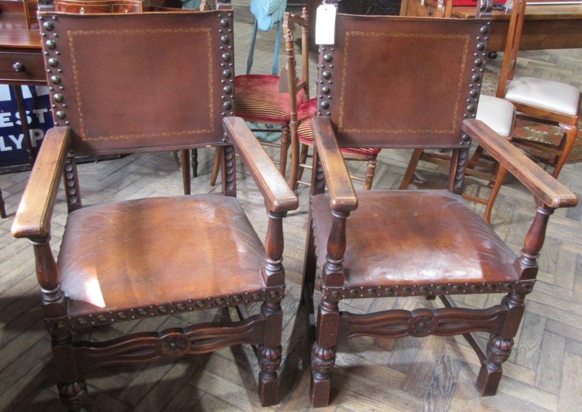 Pair of Oak & Leather Armchairs c.1930