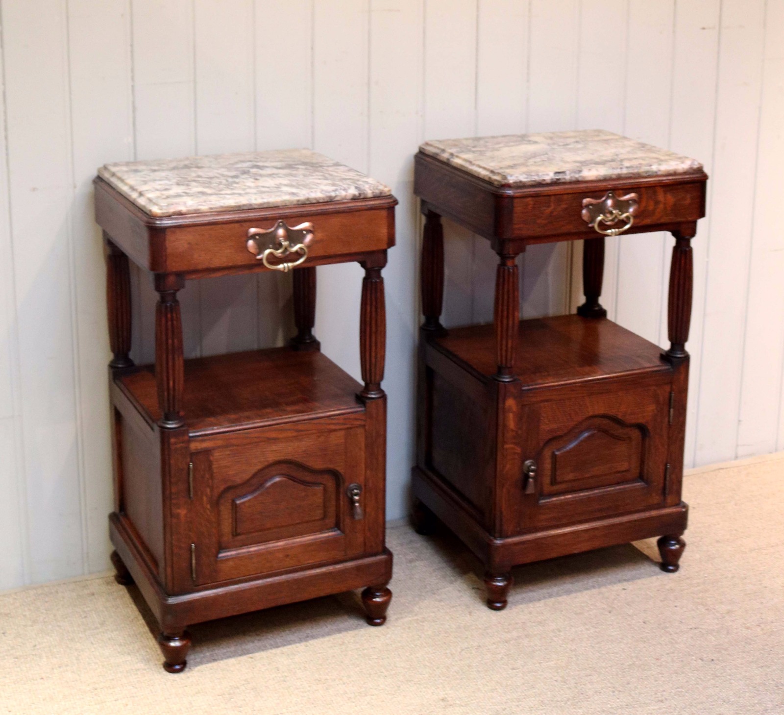 Pair of Oak Marble Top Bedside Cabinets c.1920