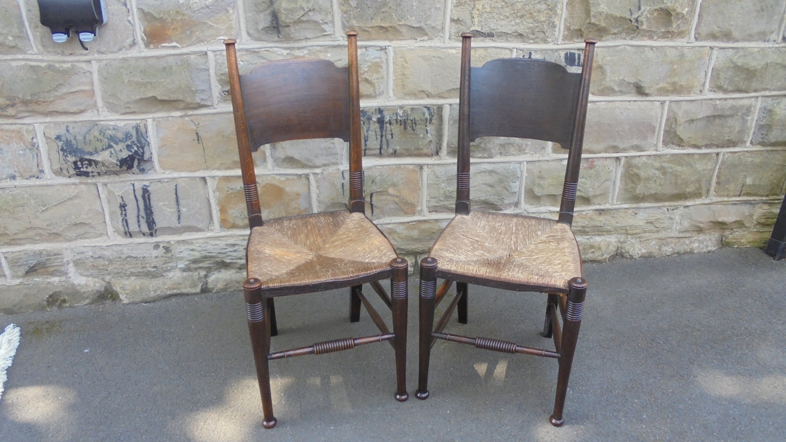 Pair of Oak Rush Seated Chairs by William Birch Liberty's
