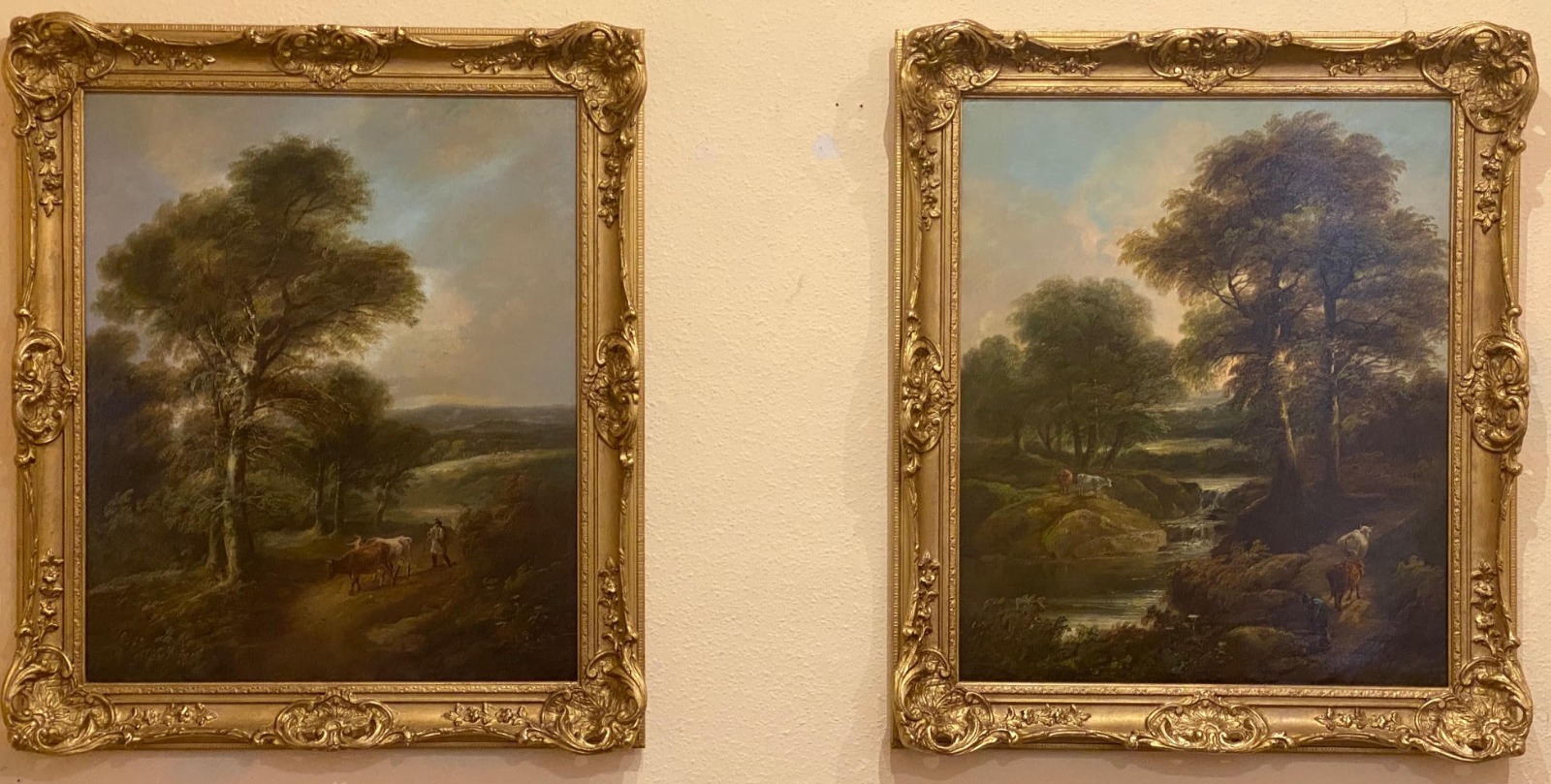 Pair of Oil on Canvas Paintings “Cattle Droving” by John Joseph Barker 'Bath'