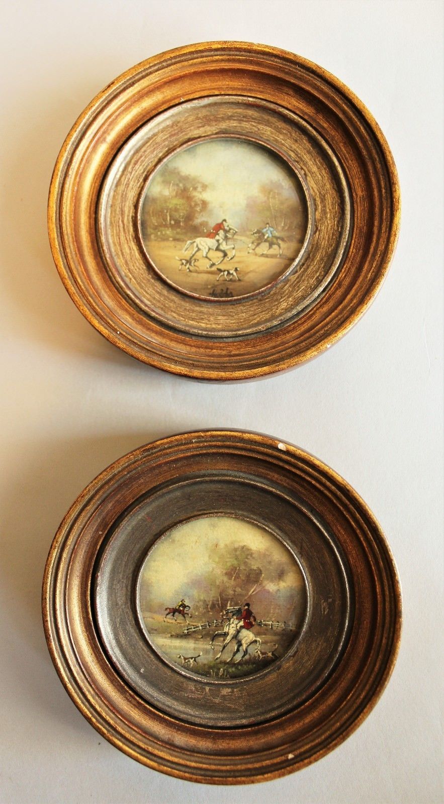 Pair of Oil Painting Miniatures Hunting Scenes c.1910 (1 of 1)