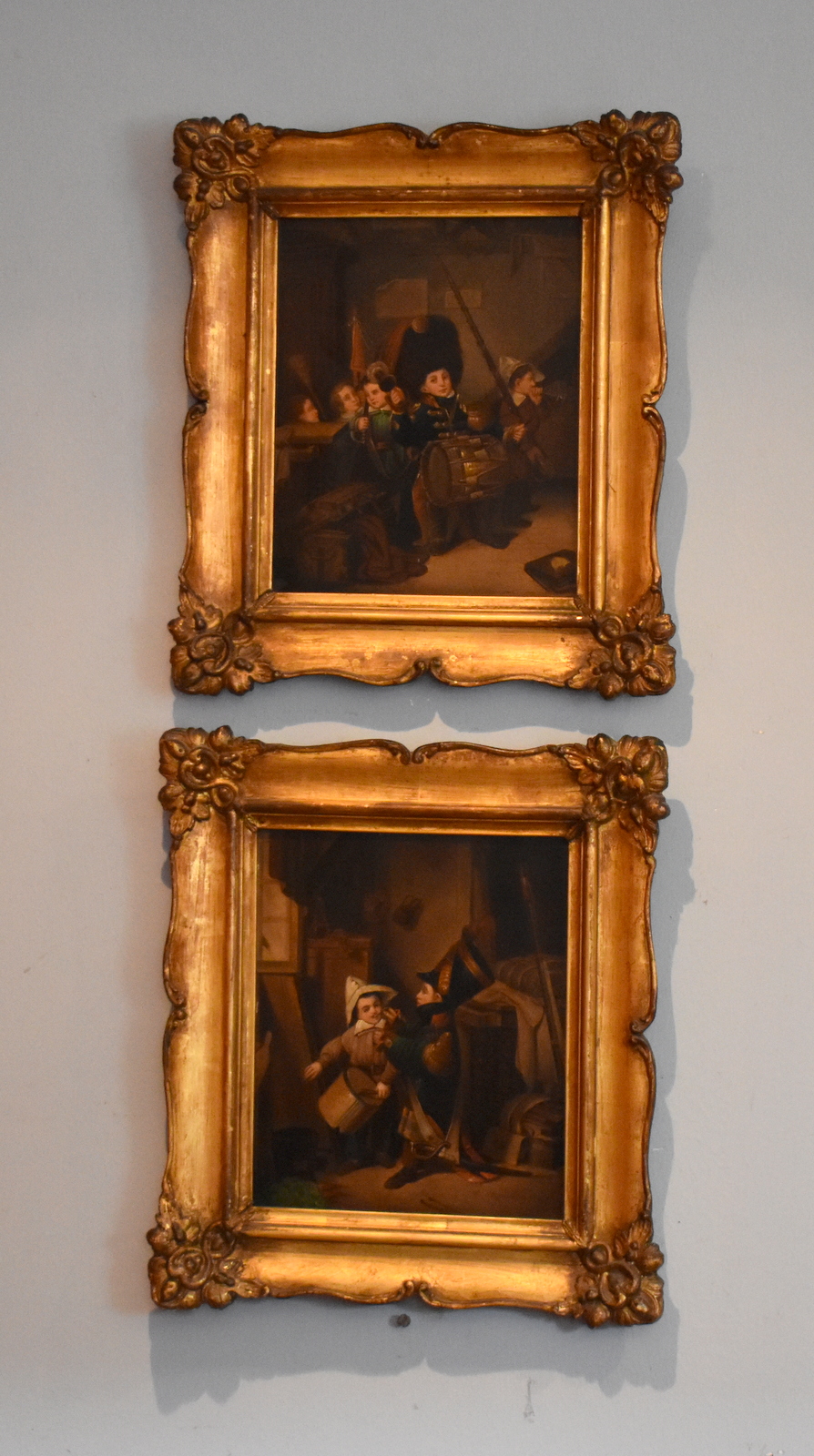 Pair of Oil Paintings of Children Playing Soldiers (1 of 9)