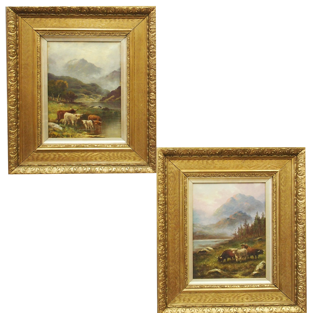 Pair of Oil Paintings of Highland Cattle by A Taylor