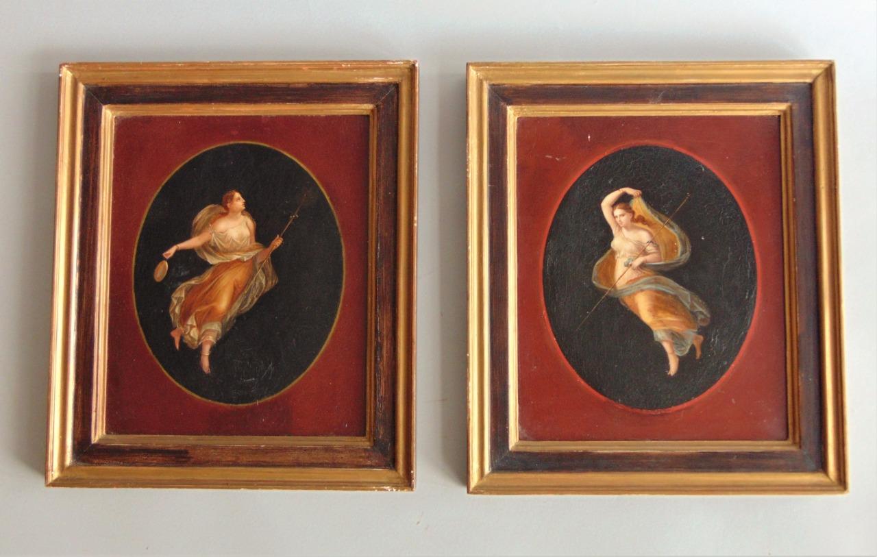 Pair of Oils on Canvas Allegorical Figures Michaelangelo Maestri Attributed
