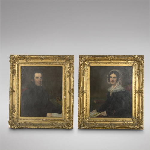 Pair of Oils on Canvas - Portraits of Isaac & Sarah Love 19th Century