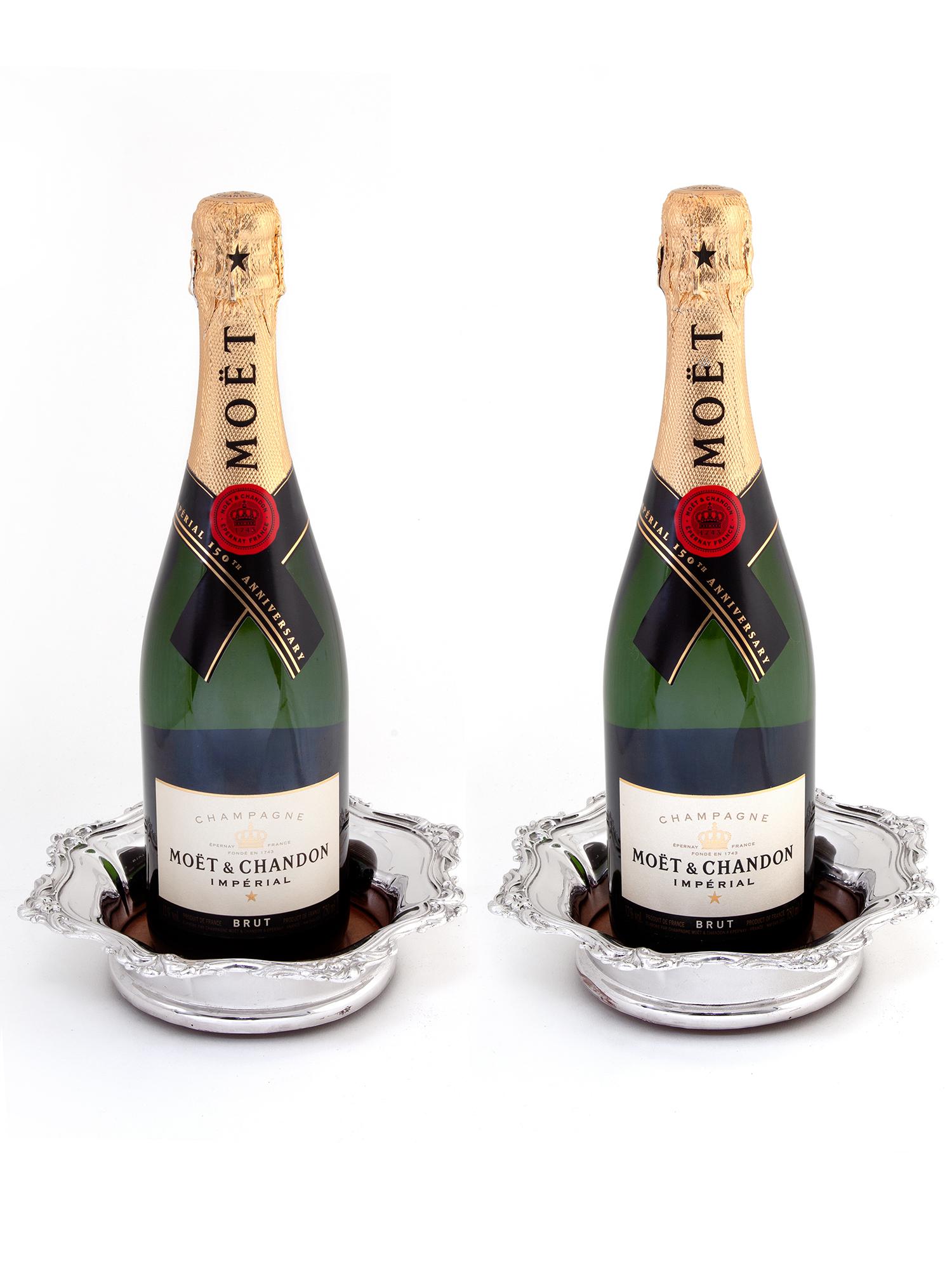 Pair of Old Sheffield Plate Coasters with Floral & Scroll Borders