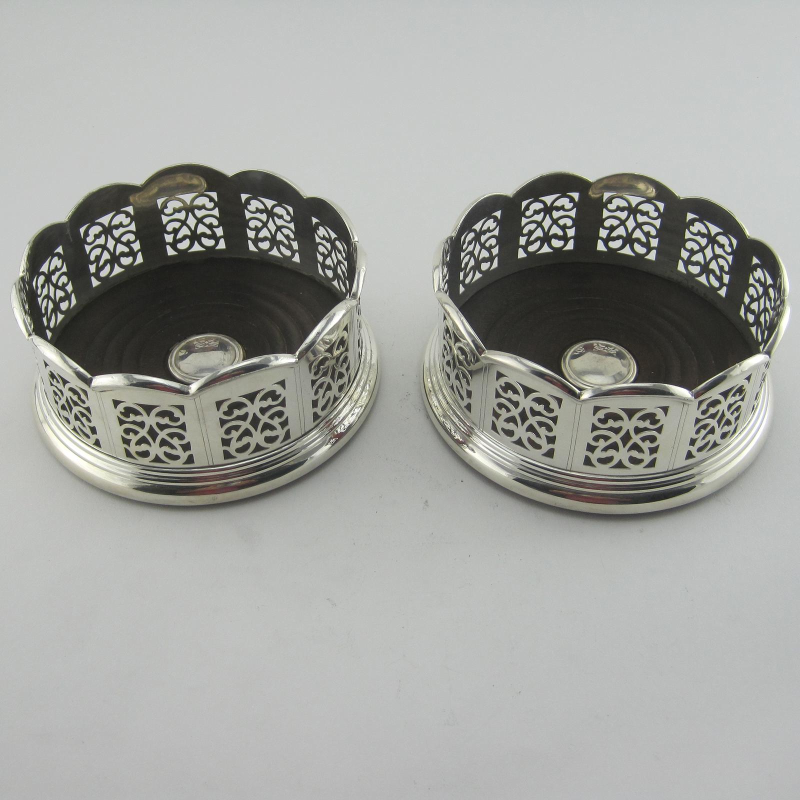 Pair of Old Sheffield Plate Wine Coasters with Scalloped Borders