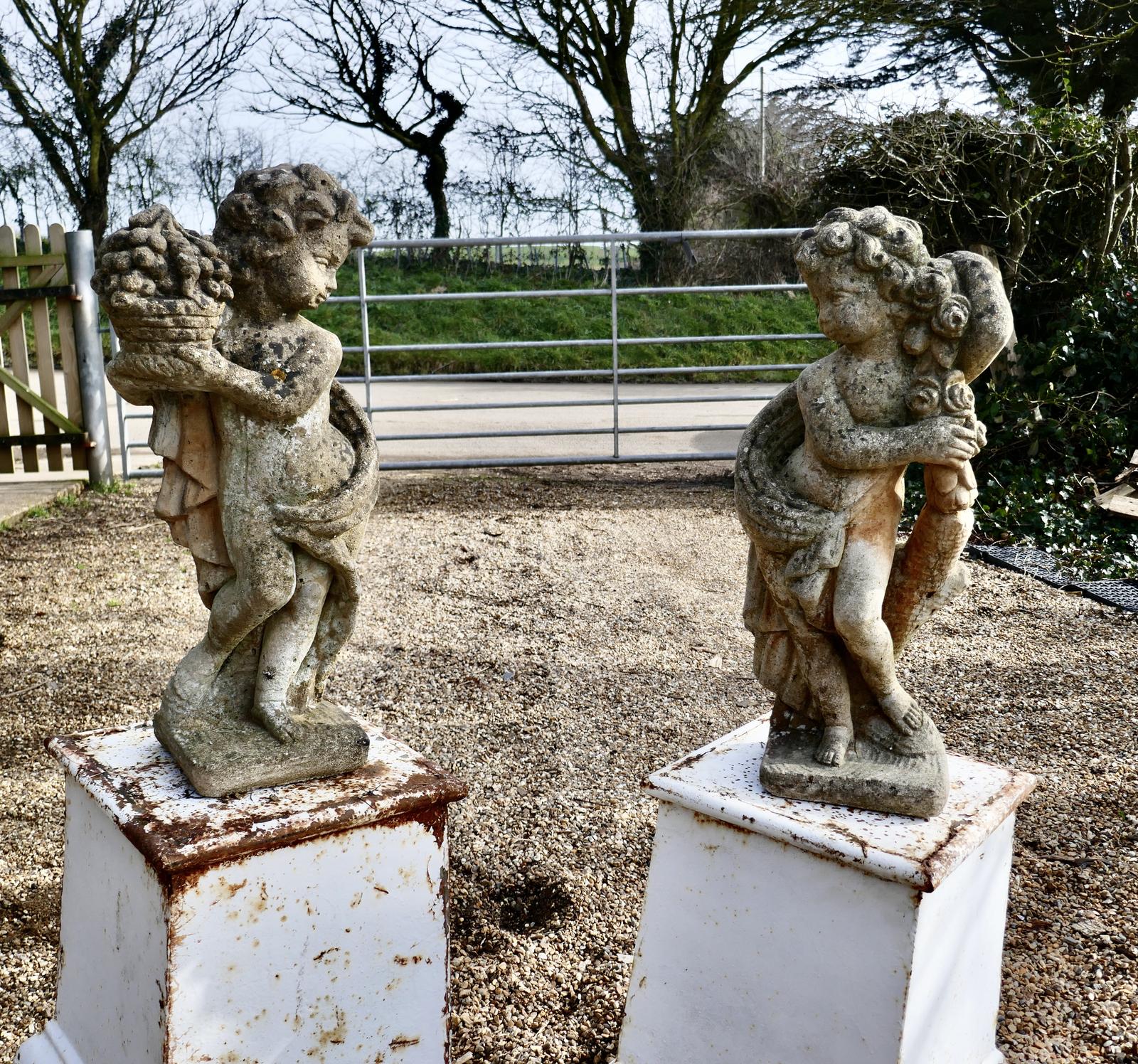 Pair of Old Weathered Classical Child Statues