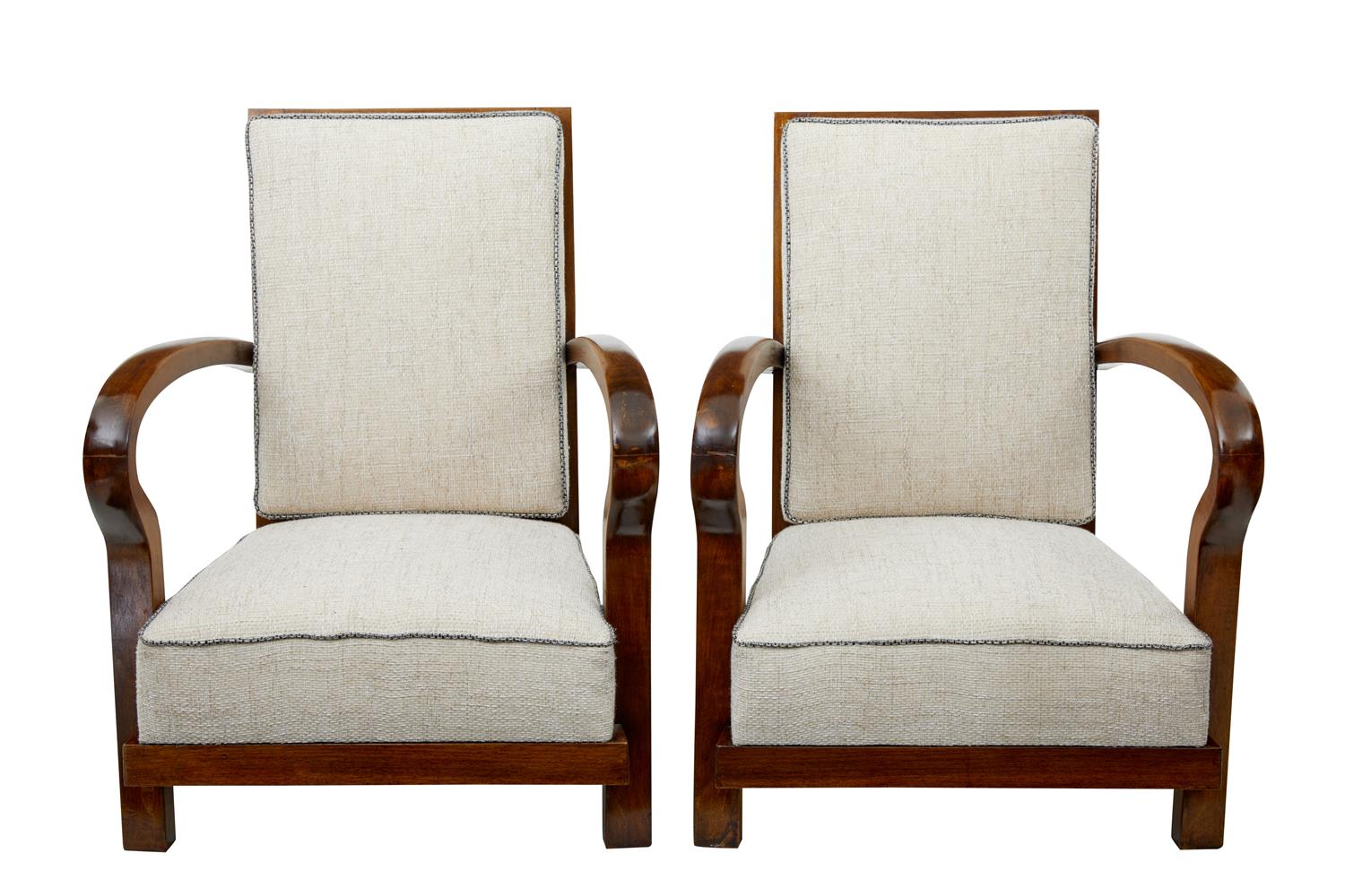 Pair of Open Frame Art Deco Walnut Armchairs