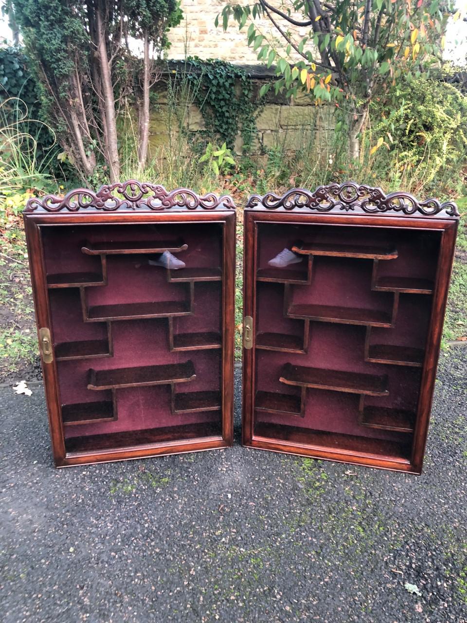 Pair of Oriental Chinese Netsuke Display Cases