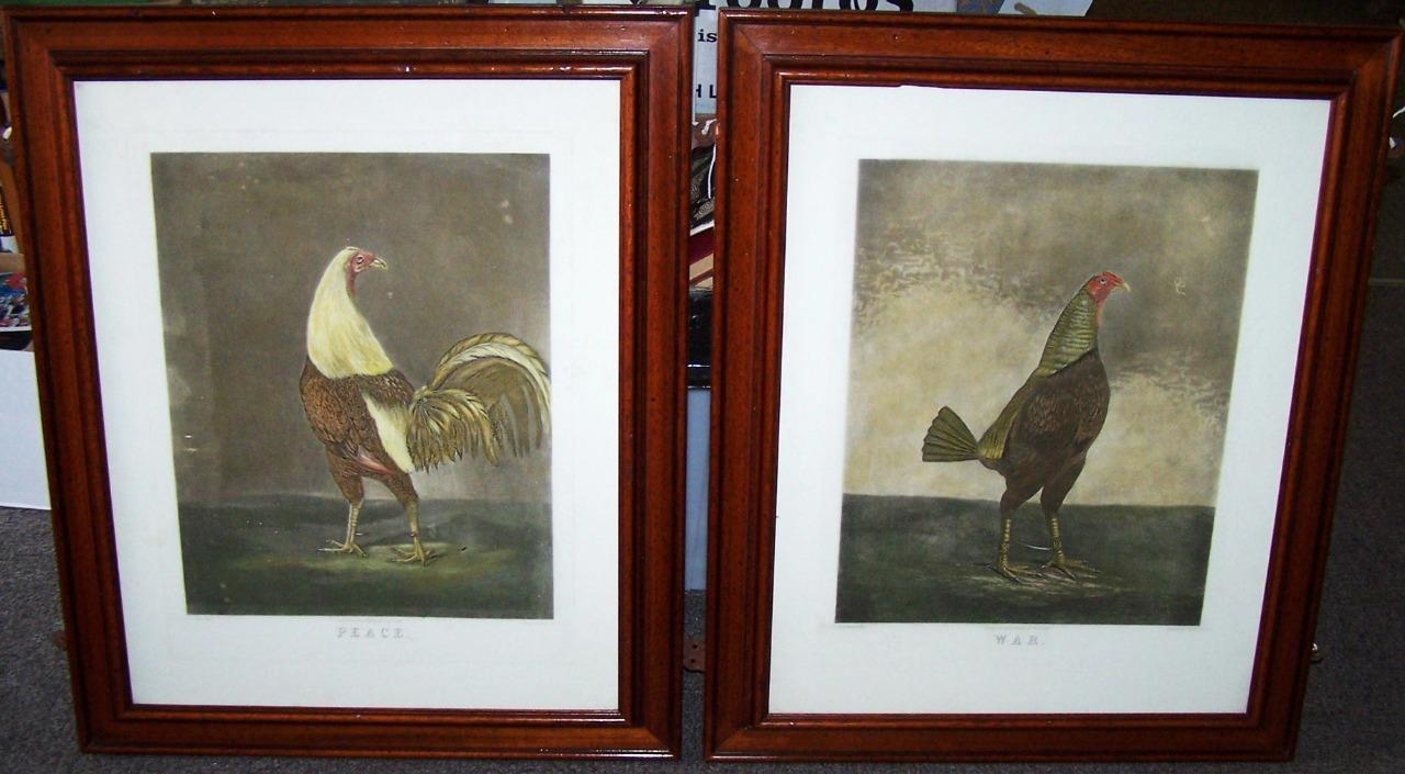 Pair of Original 19th Century Lithographs of Cock Fighting Birds, Titled War & Peace (1 of 1)
