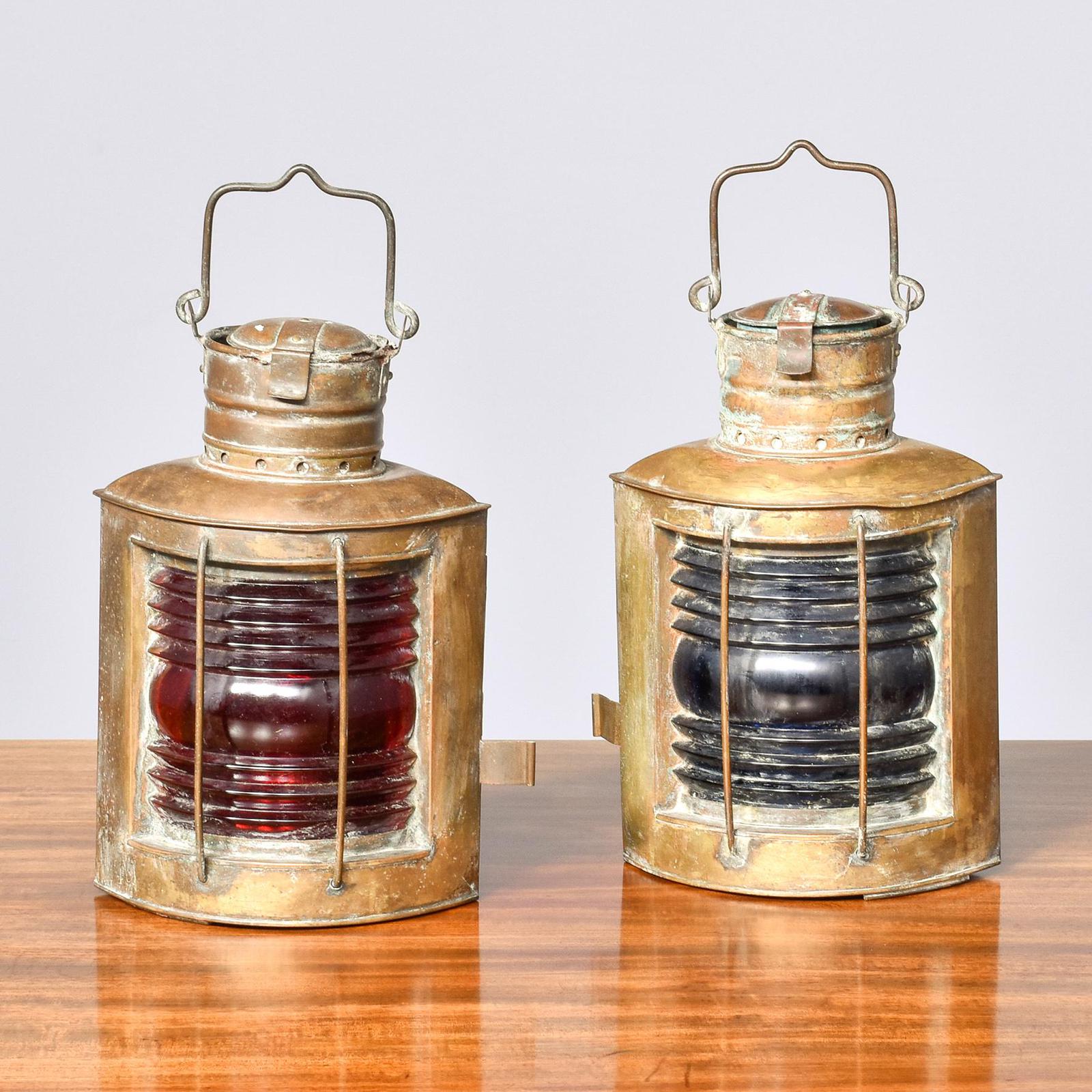 Pair of Original Victorian Brass Ship Lanterns (1 of 6)