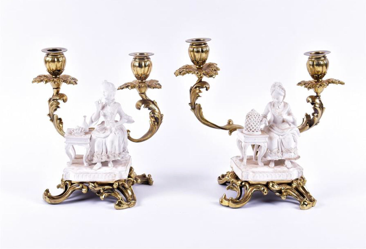 Pair of Ormolu Candle Holders with 18th Century Biscuit Figures
