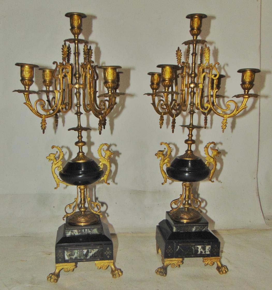 Pair of Ormolu & Marble Candelabra
