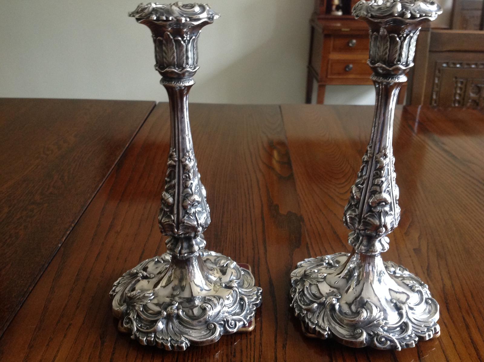 Pair of Ornate Antique Victorian Silver Candlesticks - 1844 / 1845