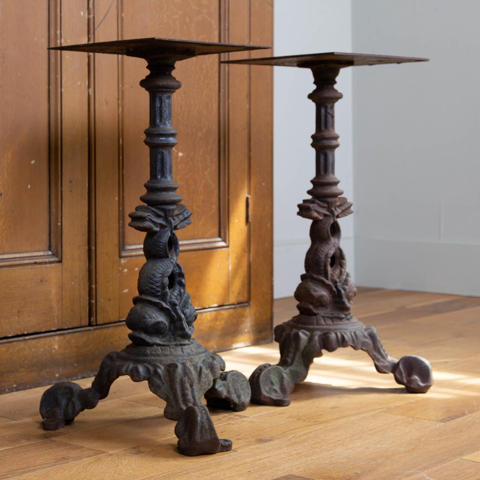 Pair of Ornate Fish Cast Iron Stands Table Bases