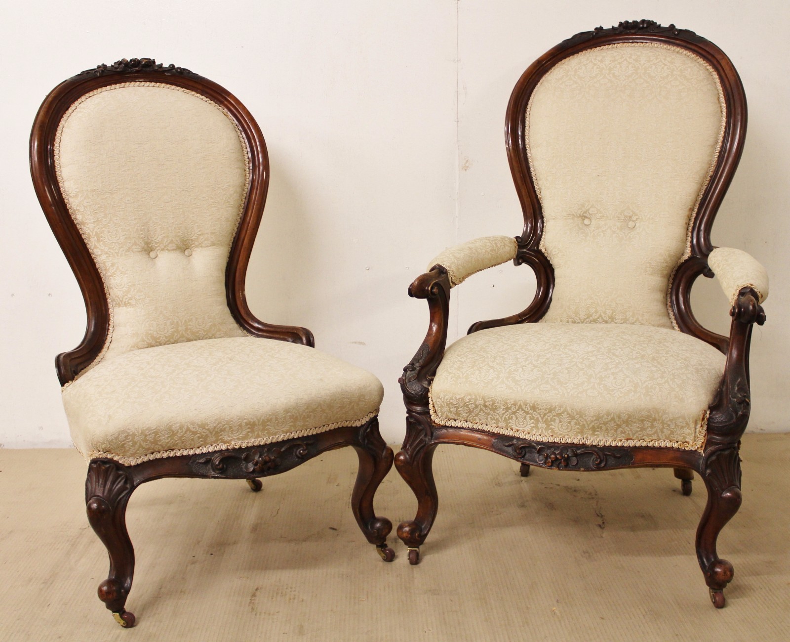 Pair of Ornate Victorian Upholstered Chairs c.1870 (1 of 1)