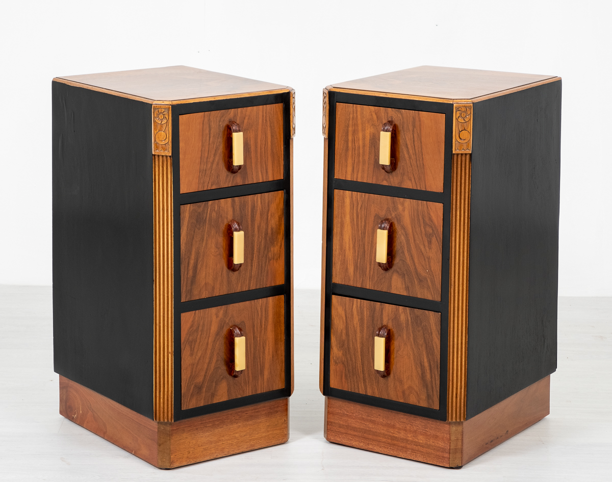 Pair of Outstanding Walnut Art Deco Bedside Cabinets