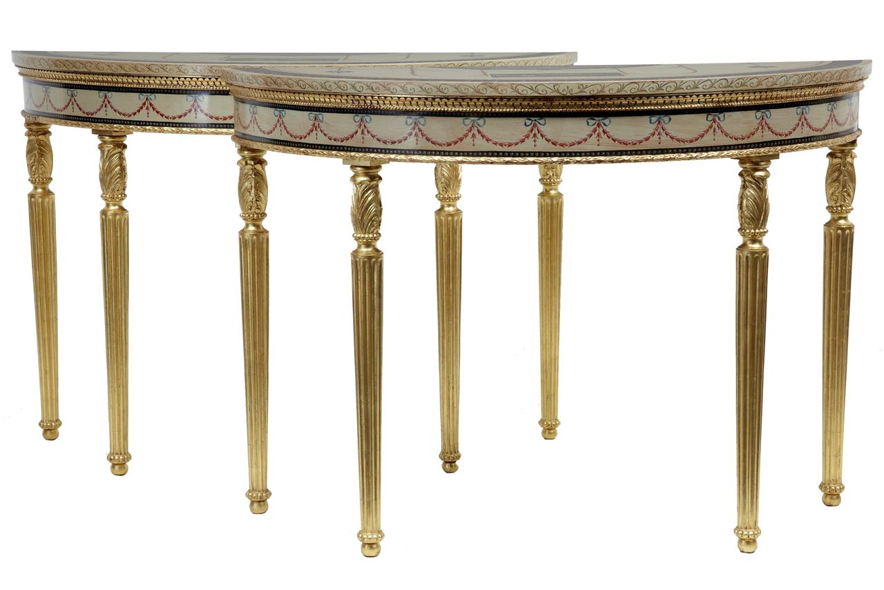 Pair of Painted Adam Influenced Demi Lune Console Tables (1 of 1)