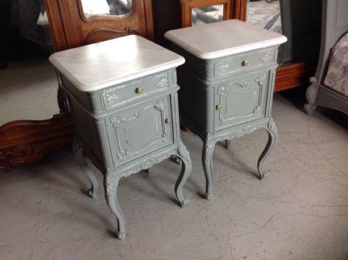 Pair of Painted French Bedside Cabinets in Plummet Grey