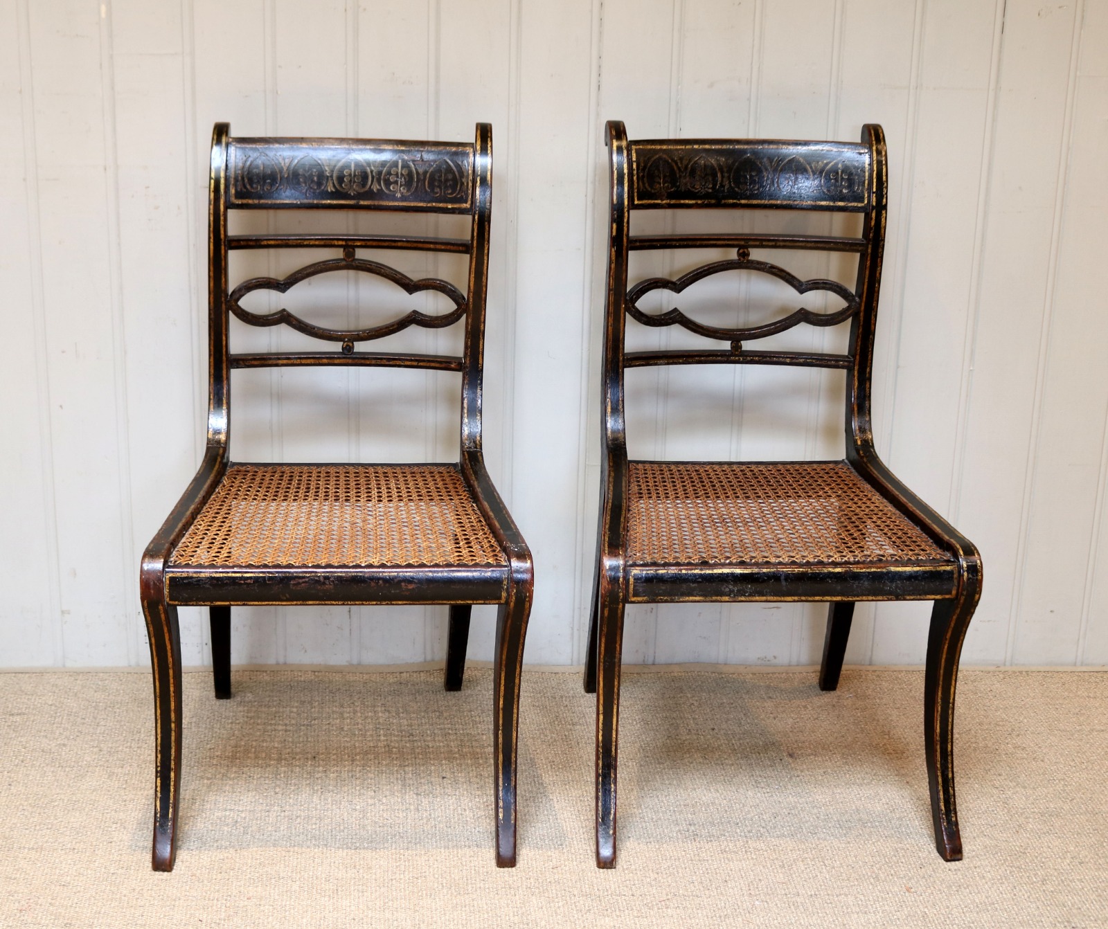 Pair of Painted Regency Cane Seat Chairs