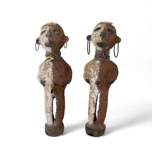 Pair of Painted West African Igbo Tribal Terracotta Figures