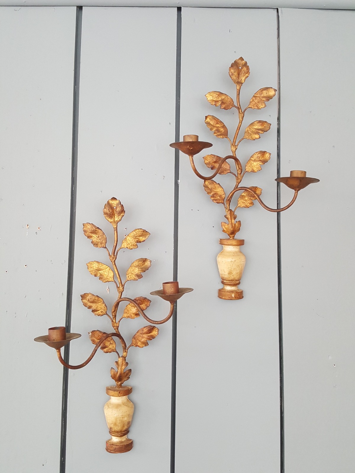 Pair of Painted Wooden French Wall Lights C.1920