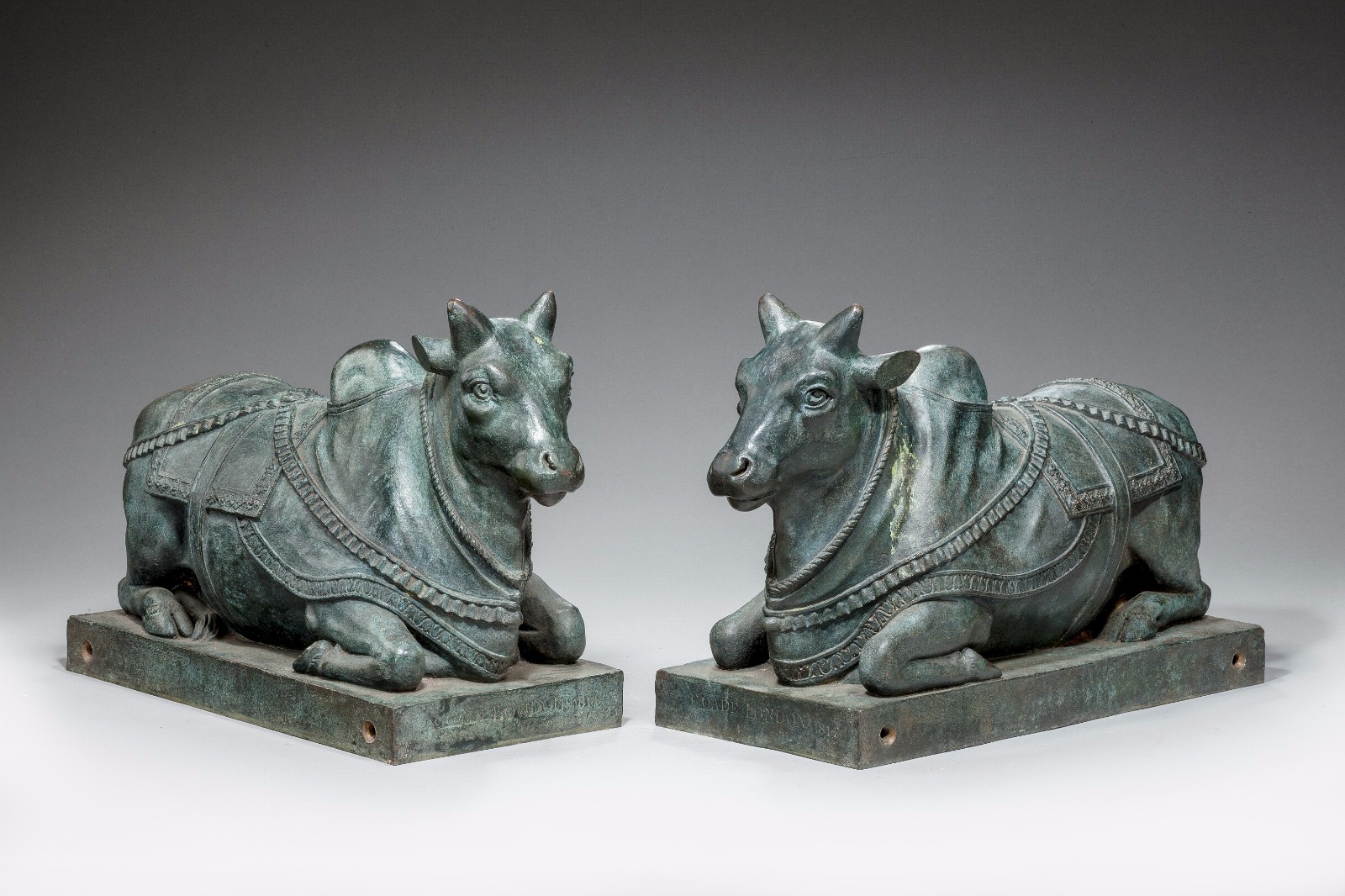 Pair of Patinated Bronze Brahma Bulls