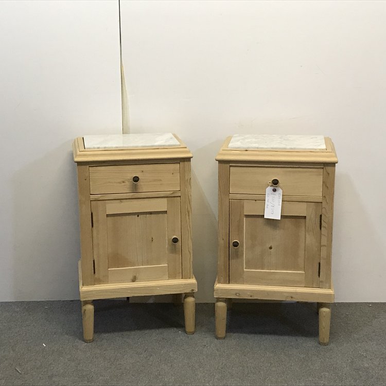 Pair of Pine Bedside Cupboards with Marble Tops c.1920