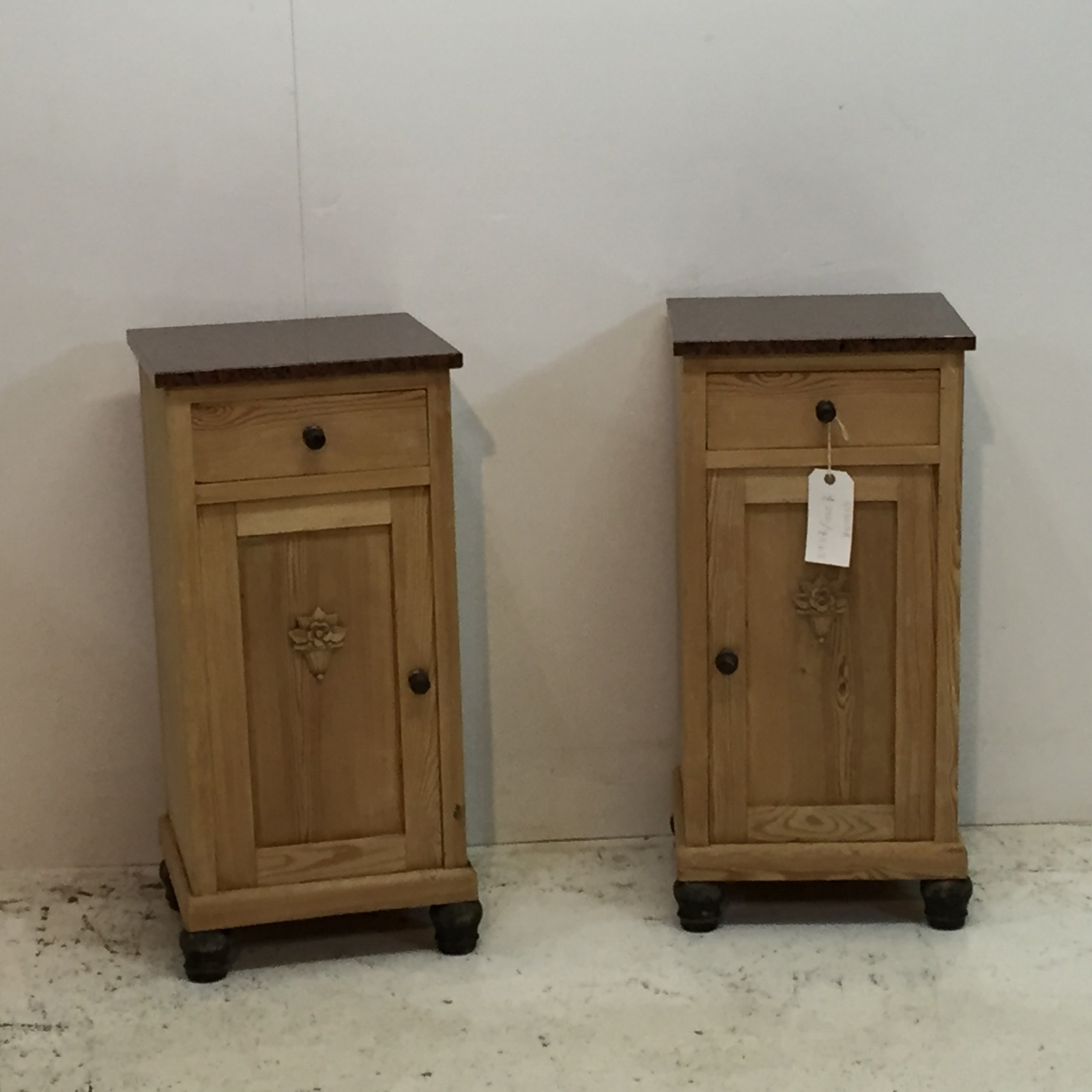 Pair of Pine Bedside Cupboards with Marble Tops c.1920
