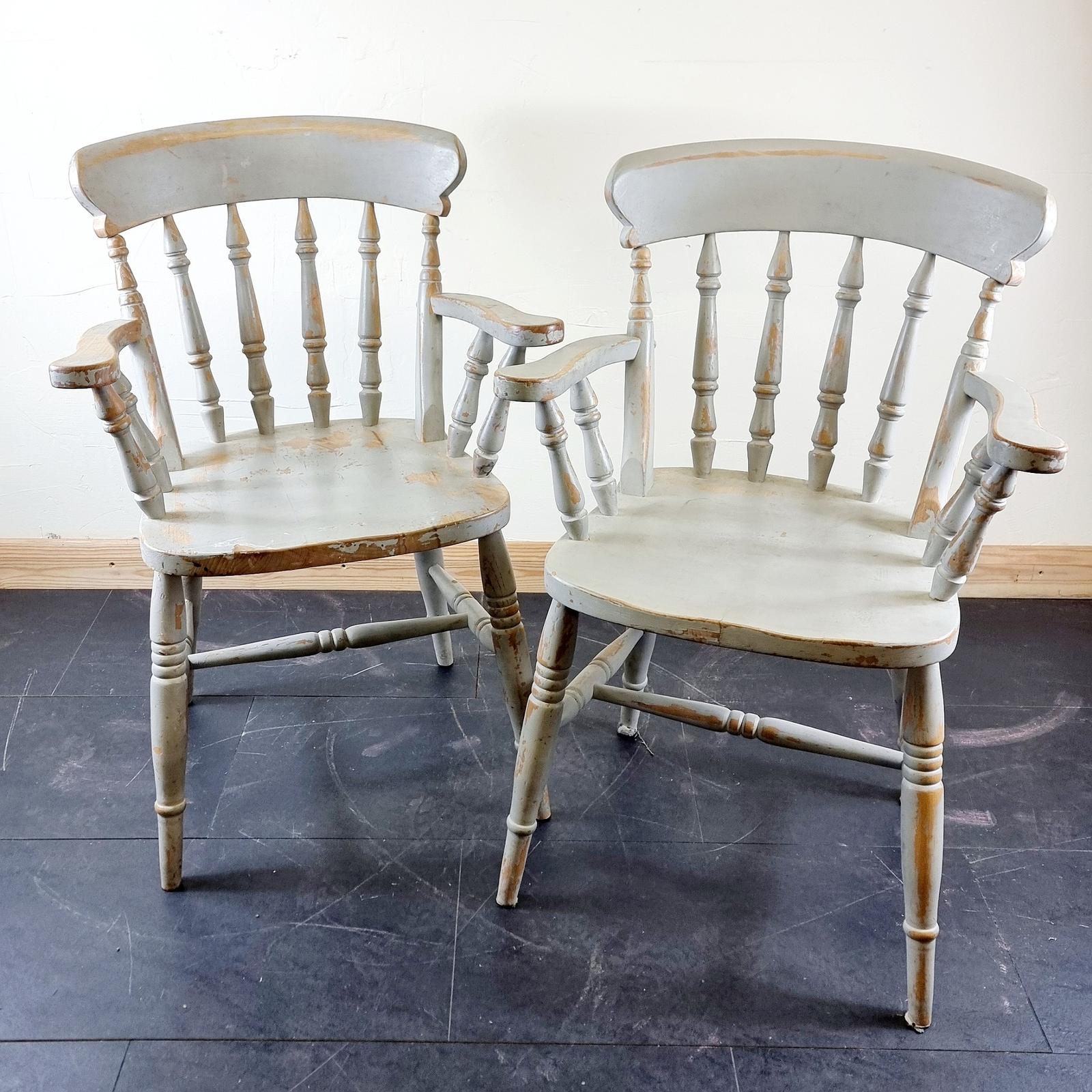 Pair of Pine Farmhouse Elbow Carver Chairs