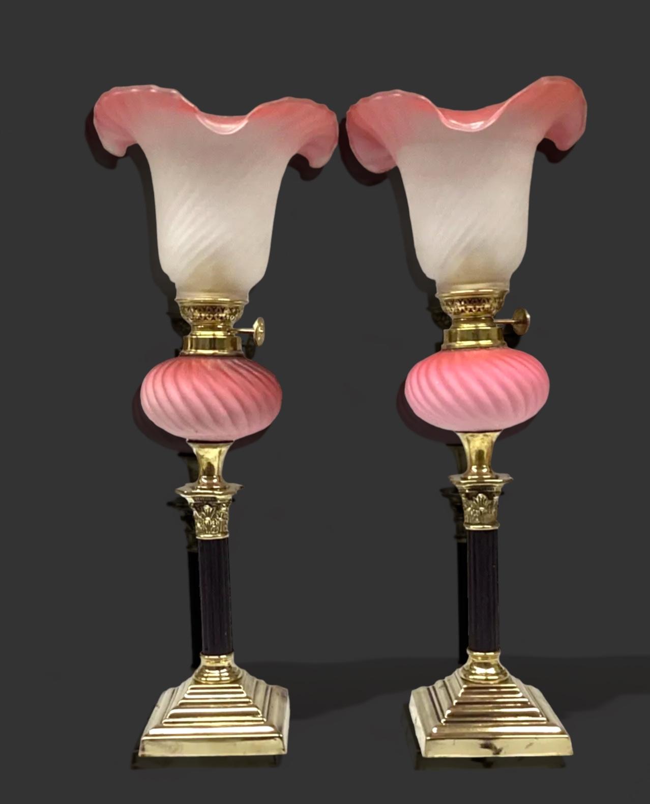 Pair of Pink Antique Peg Oil Lamps Gaudard Burners