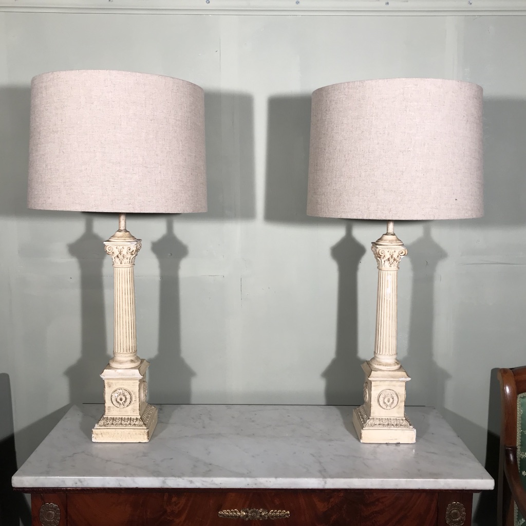 Pair of Plaster Corinthian Column Lamps (1 of 1)
