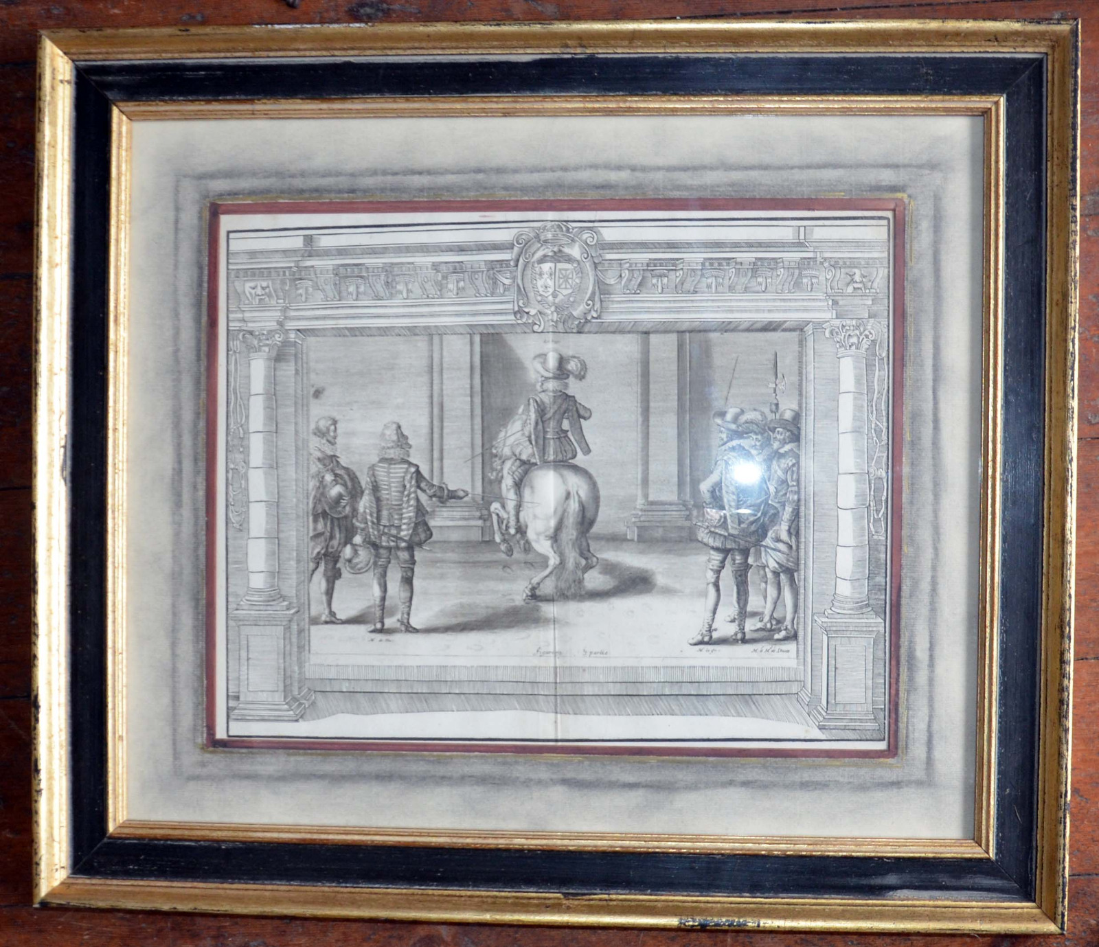 Pair of Pluvinel Dressage Prints 1623-> Framed