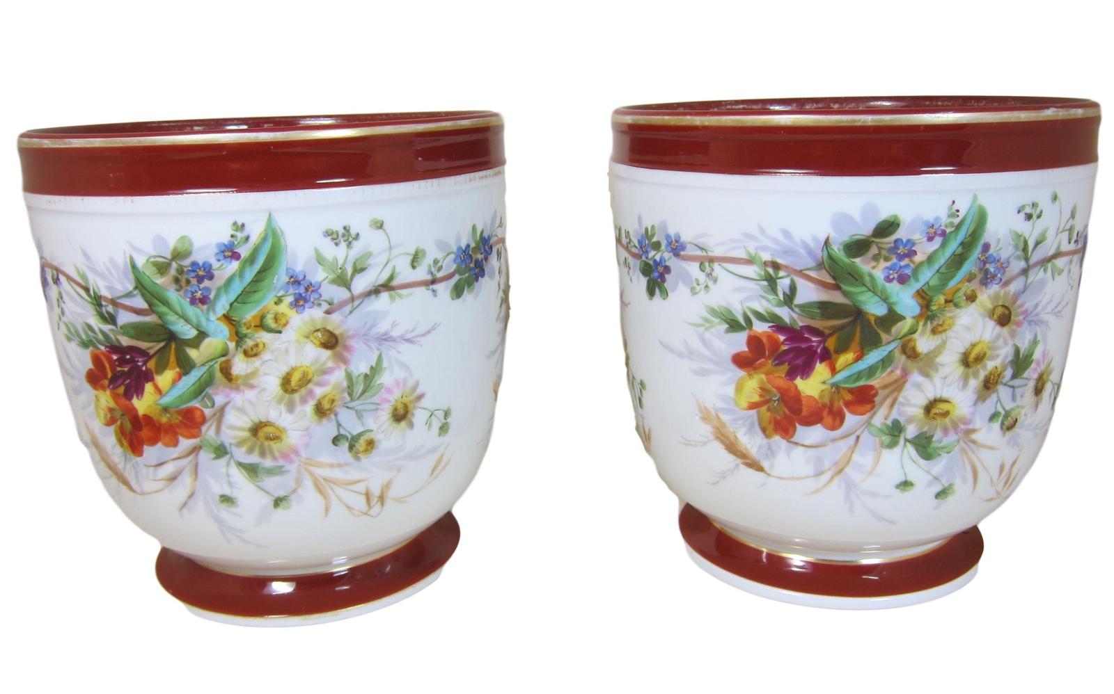 Pair of Porcelain Jardineres Hand Painted with Flowers