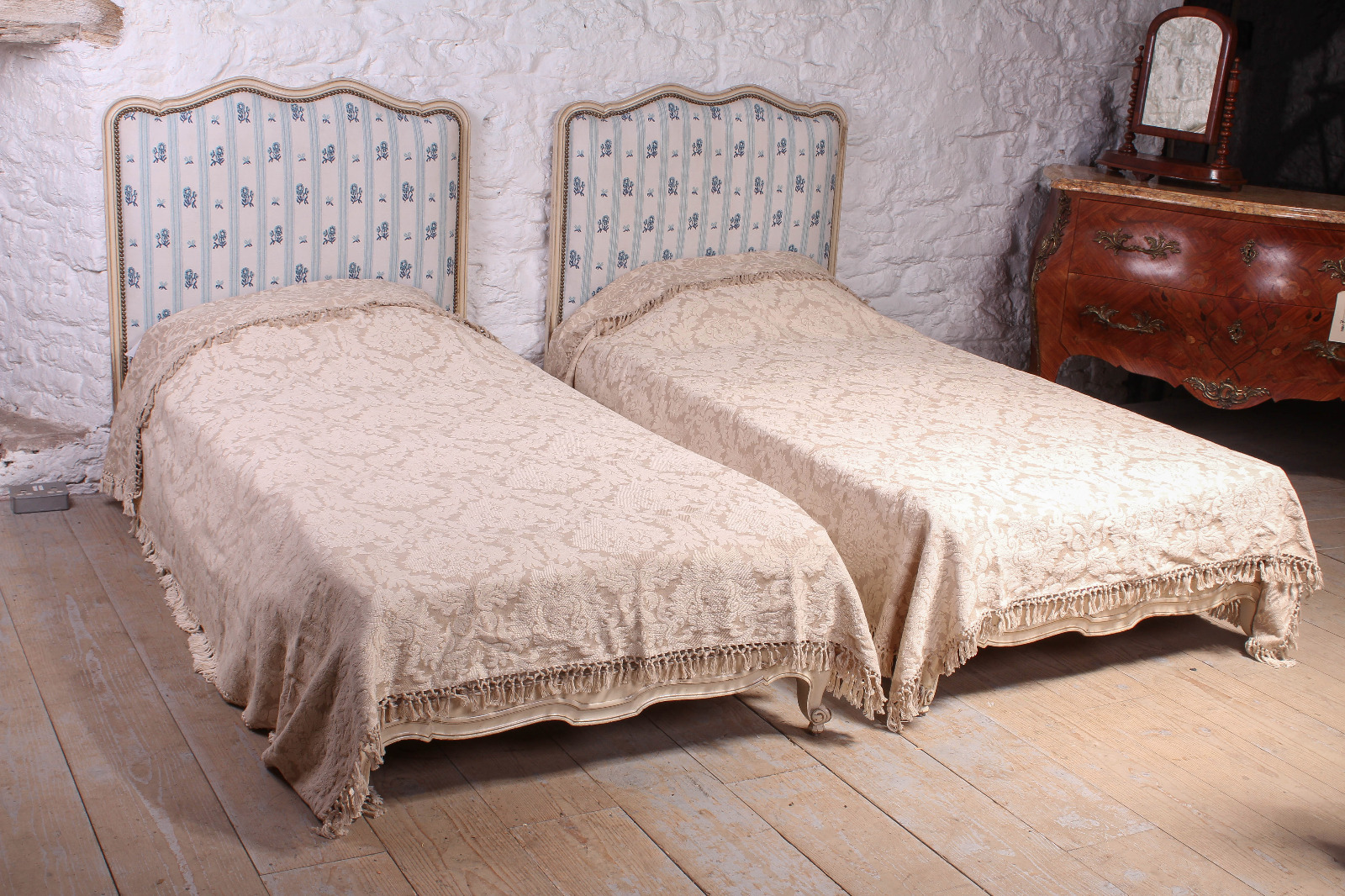 Pair of Pretty French Low End Single Upholstered Beds c.1920 (1 of 1)