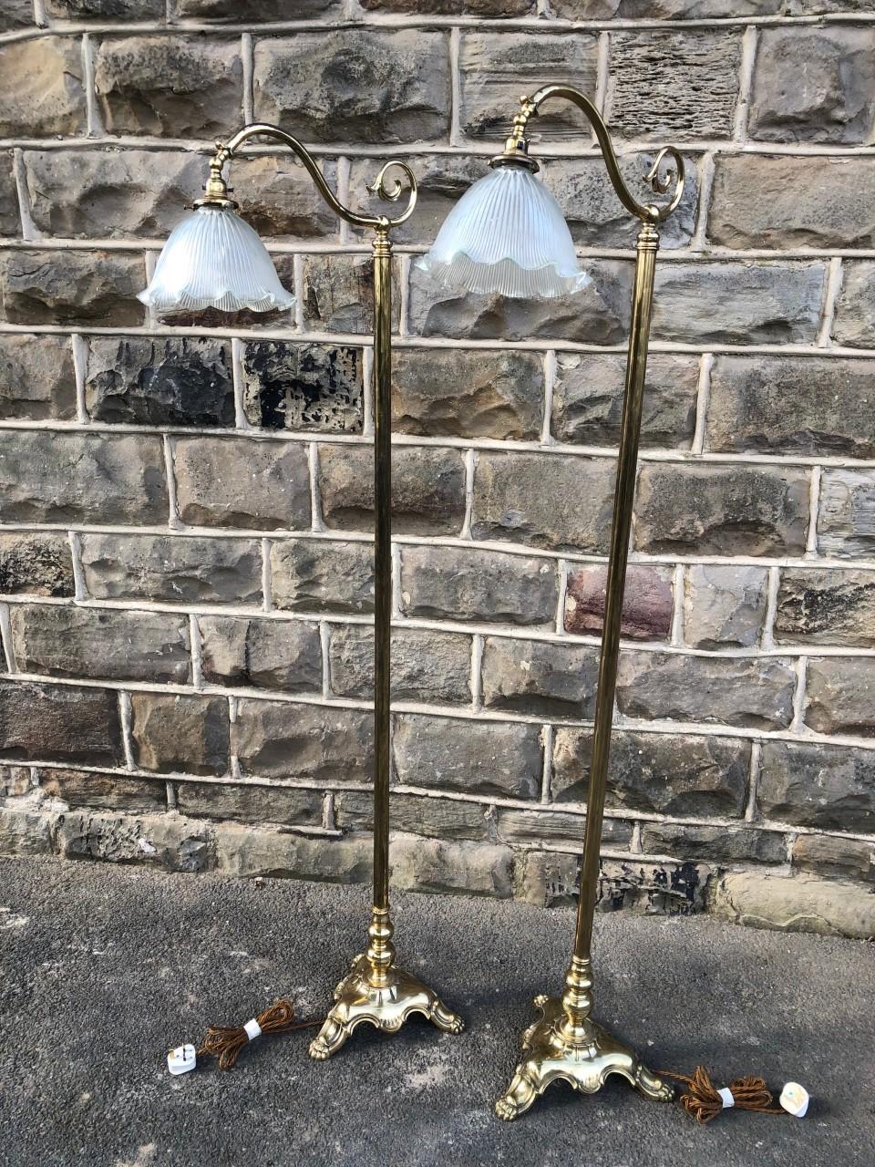 Pair of Quality Brass Floor Standing Reading Lamps
