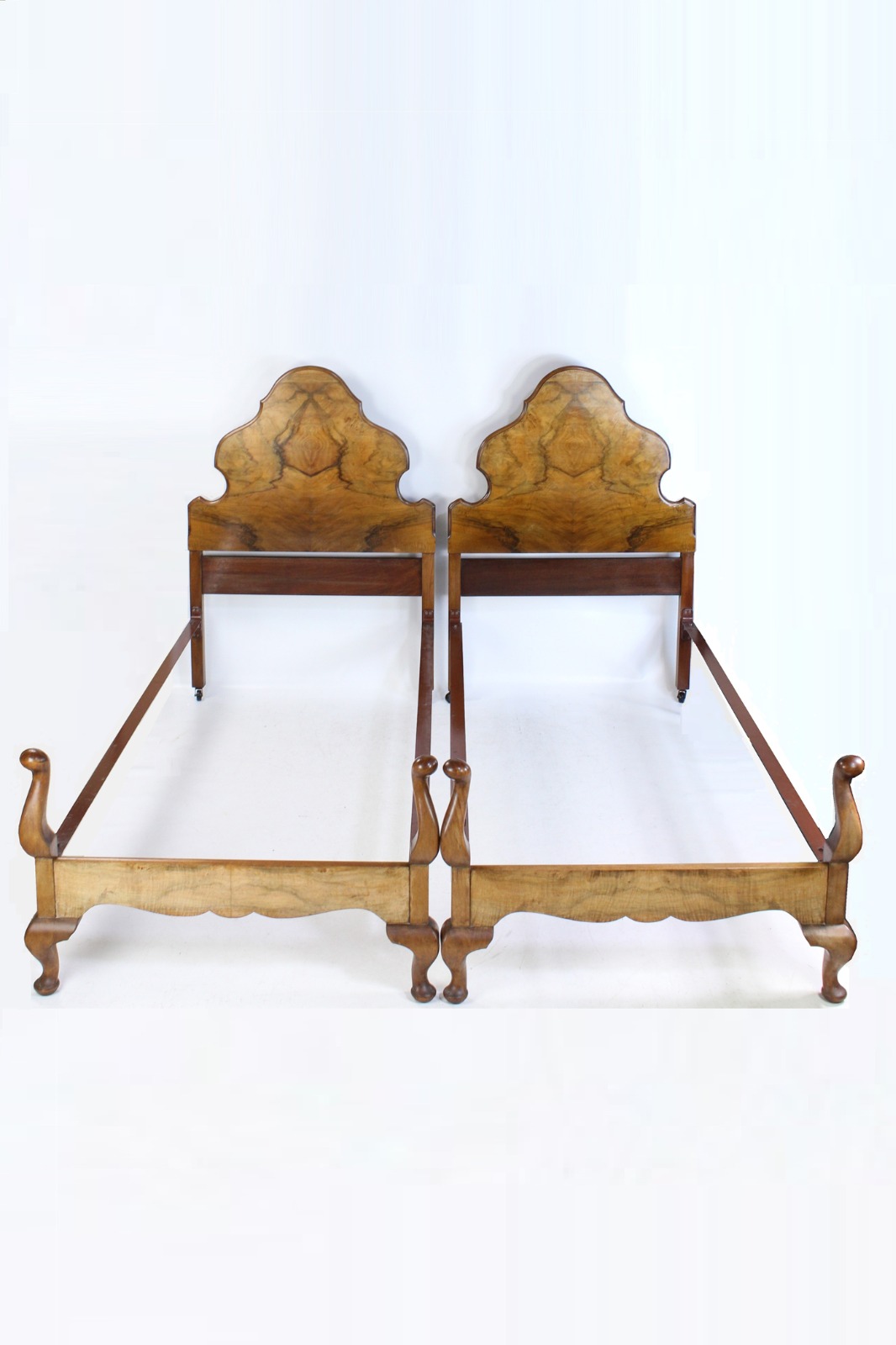 Pair of Queen Anne Revival Walnut Single Beds (1 of 1)