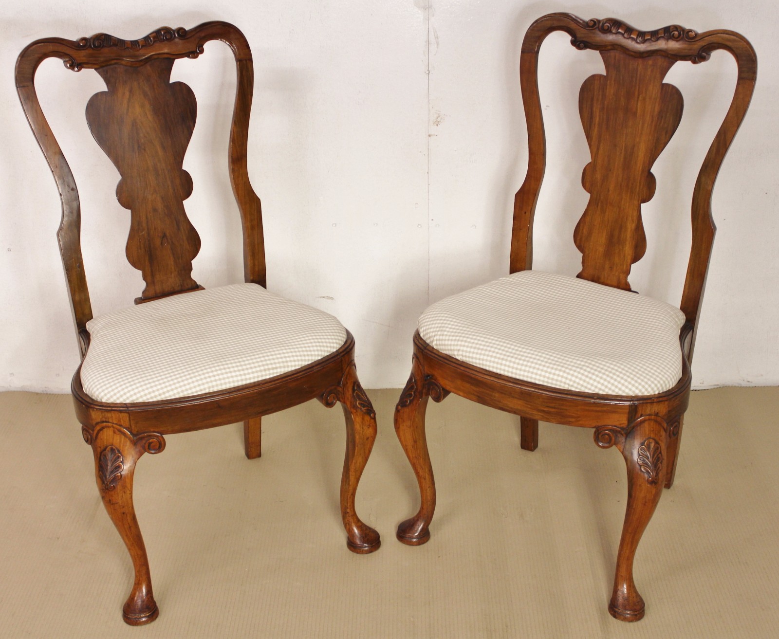 Pair of Queen Anne Style Walnut Chairs c.1900 (1 of 1)