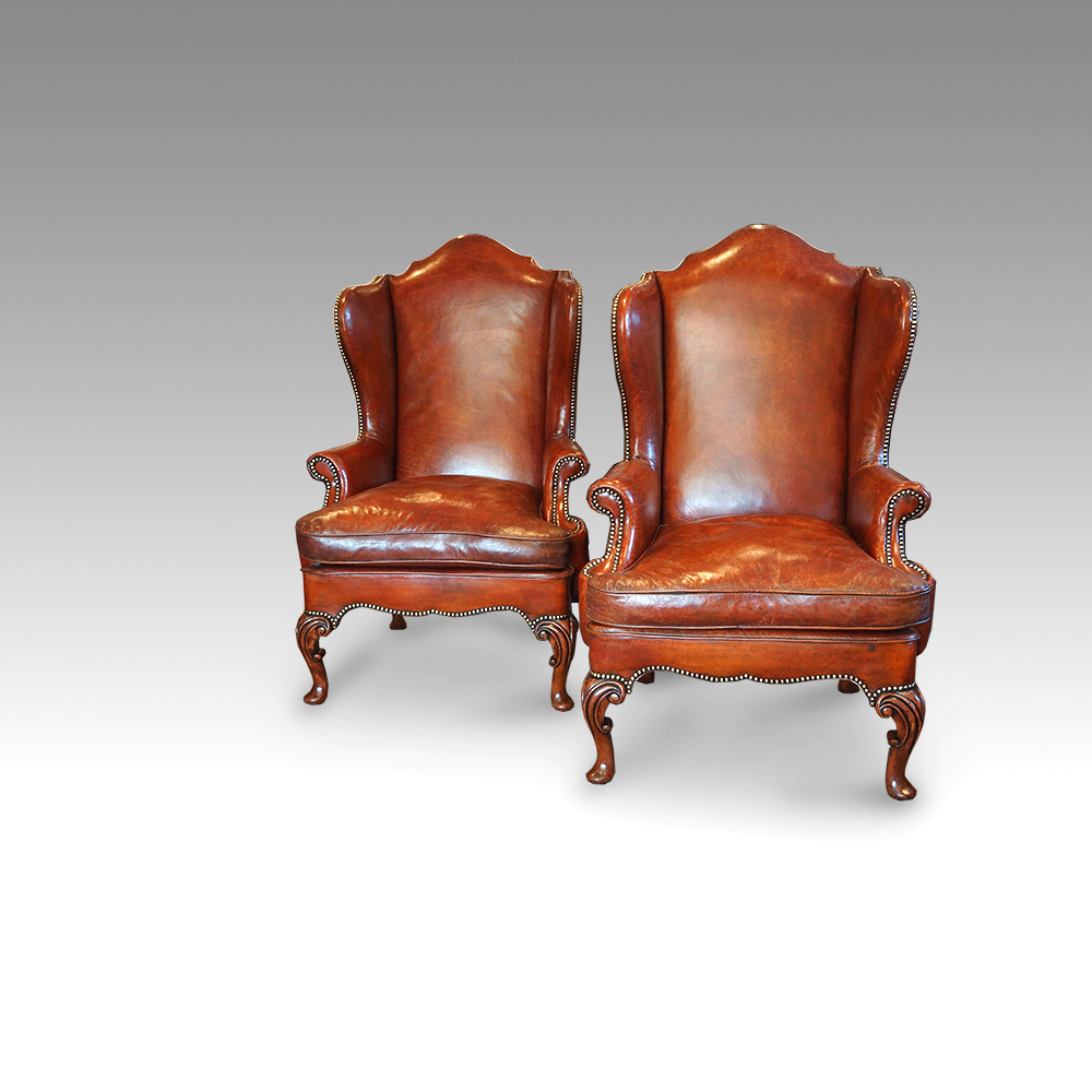 Pair of Queen Anne Style Walnut Wing Chairs (1 of 1)