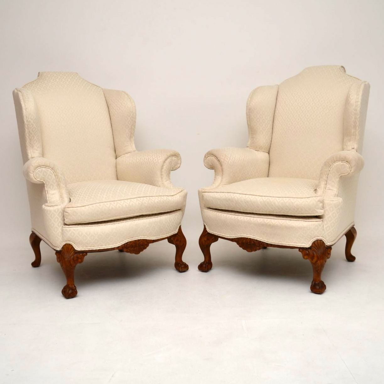 Pair of Queen Anne Style Wing Back Armchairs c.1920 (1 of 1)