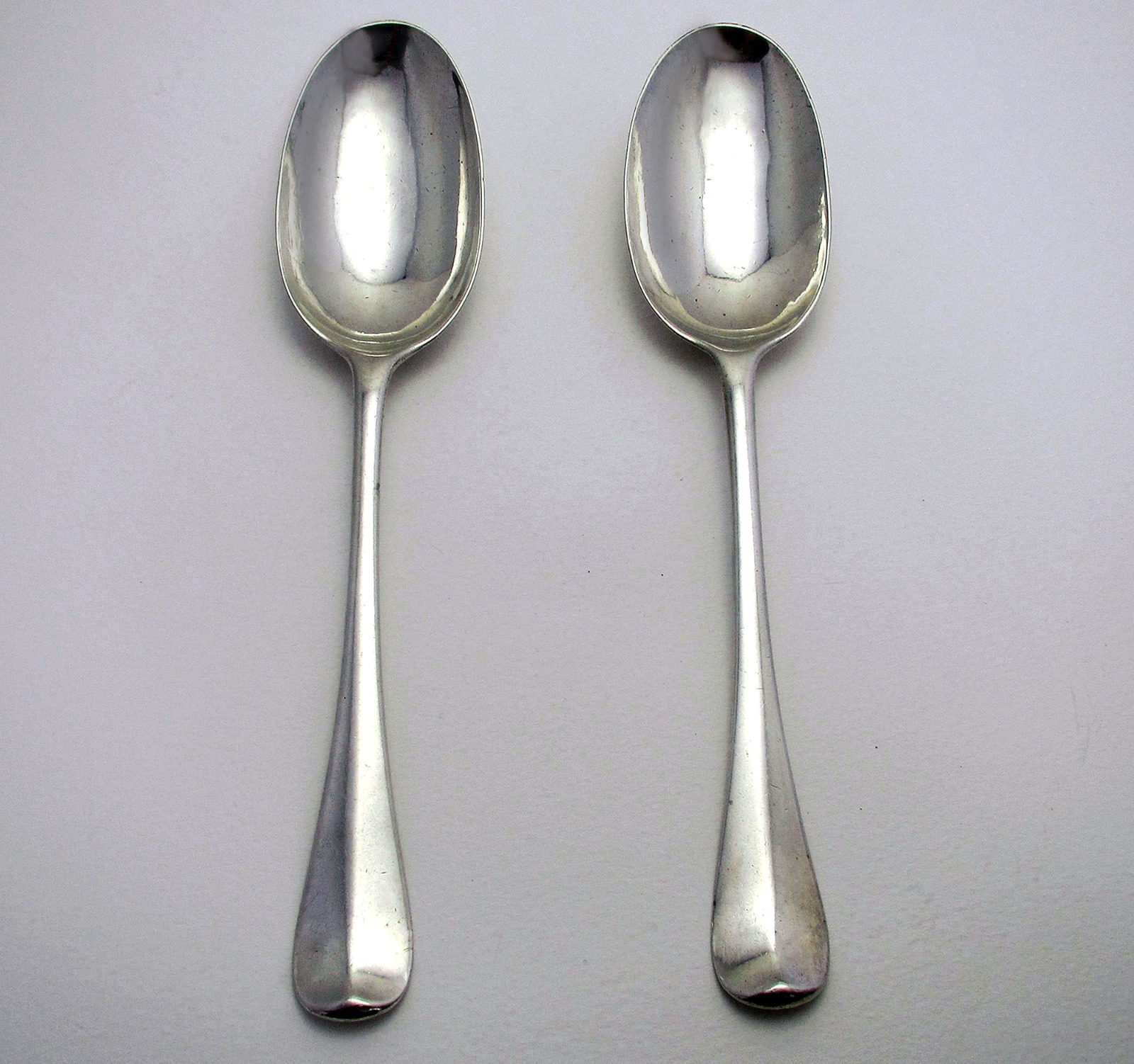 Pair of RAre George I Solid Britannia Silver English Georgian RAttail Table Spoons Early 18th Century. London, Joseph Barbut