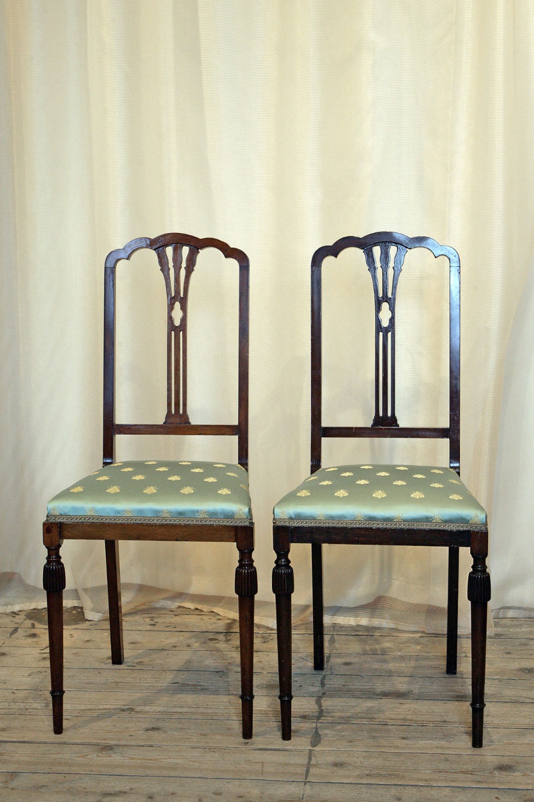 Pair of Refined Bedroom Chairs Upholstered in Napoleonic Bee Fabric